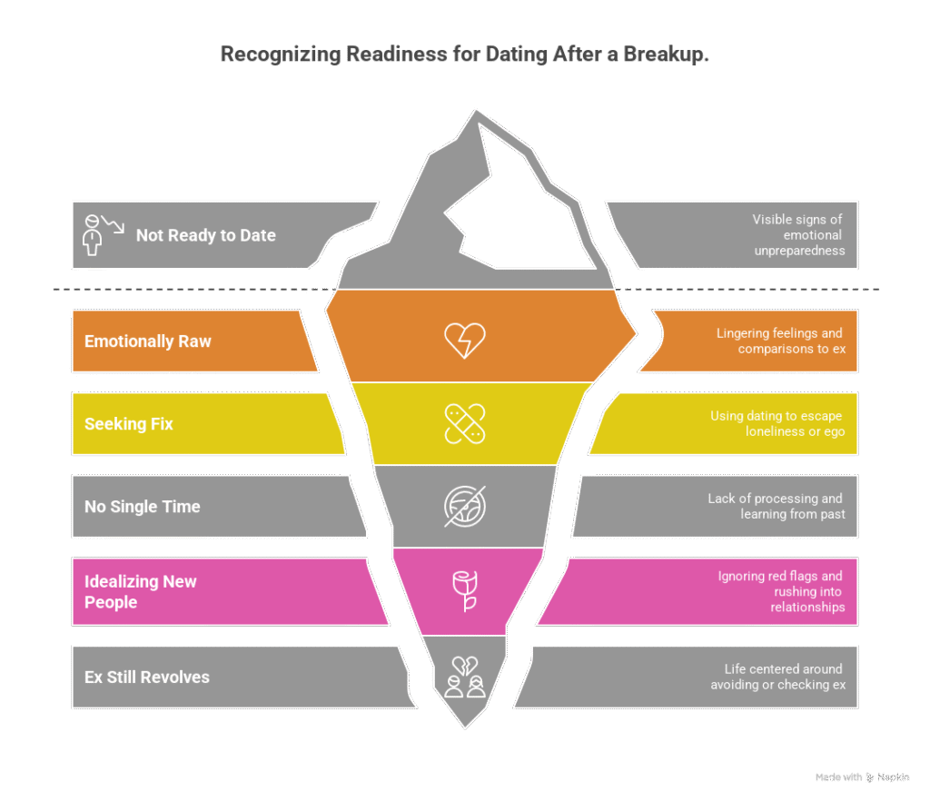 Focus on markers of readiness rather than calendar dates. You’re likely ready when you can think about your ex without intense pain, you’ve processed the lessons from the relationship, you’re genuinely content with your single life, you’ve addressed patterns from previous relationships, and you’re interested in someone new for who they are rather than what they represent.